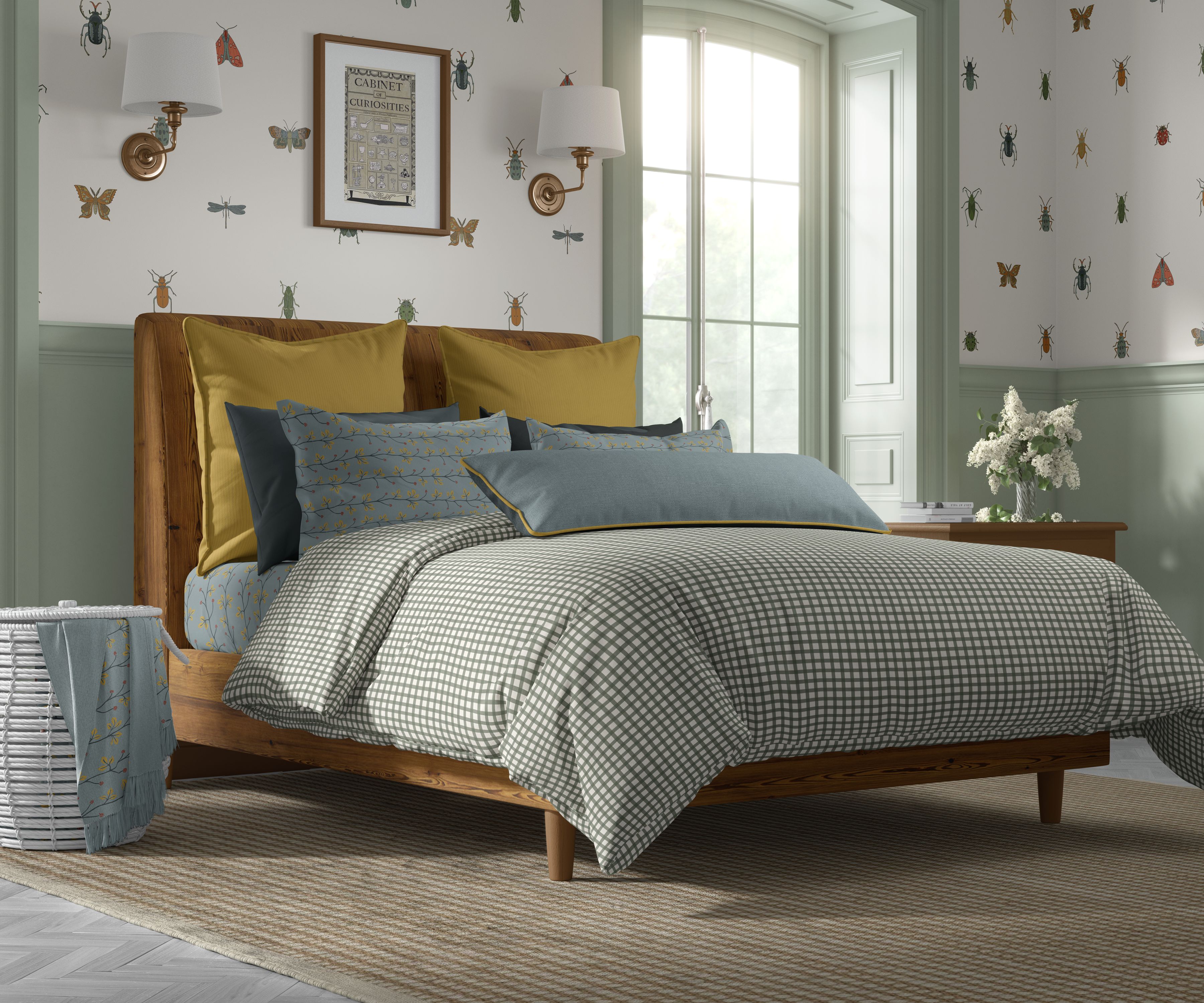This past year I've been sketching a lot of bugs to go on wallpaper for a friend's kids' room. I had been thinking about creating a pattern collection in the spirit of late 19th century "Cabinets of Curiosities", so this wallpaper pattern is inspired by scientific entomology drawings. I inked all my sketches and had fun with a bit of photo shoot around the meadow and in my husband's vegetable garden today. Enjoy!